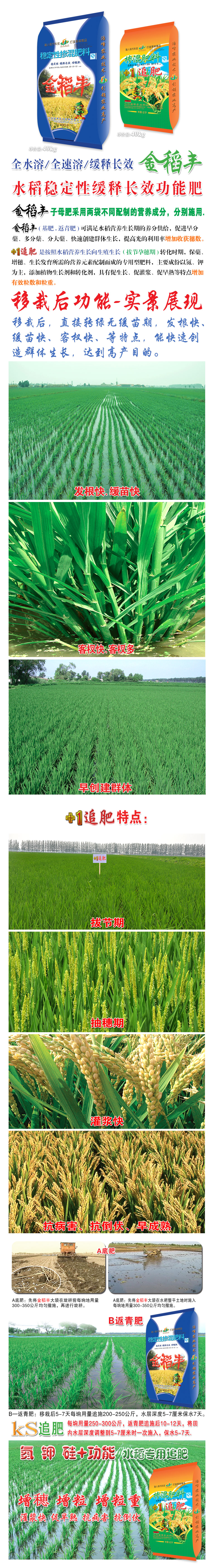 金稻豐子母肥采用兩袋不同配制的營(yíng)養(yǎng)成分,分別施用。金稻豐(基肥.返青肥)可滿足水稻營(yíng)養(yǎng)生長(zhǎng)期的養(yǎng)分供給,促進(jìn)早分蘗、多分蘗、分大蘗、快速創(chuàng)建群體生長(zhǎng),提高光的利用率增加收獲穗數(shù)。+1追肥是按照水稻營(yíng)養(yǎng)生長(zhǎng)向生殖生長(zhǎng)(拔節(jié)孕穗期)轉(zhuǎn)化時(shí)期,保蘗、增穗、生⒂璧撓嘏渲貧傻淖ㄓ瞇頭柿?,主要成份揖壀、钾为嘱崿添加謪㈠婜长剂和转化剂,具訉戀生长、促灌浆、促钥r斕忍氐閽黽佑行ЯJ土V亍?