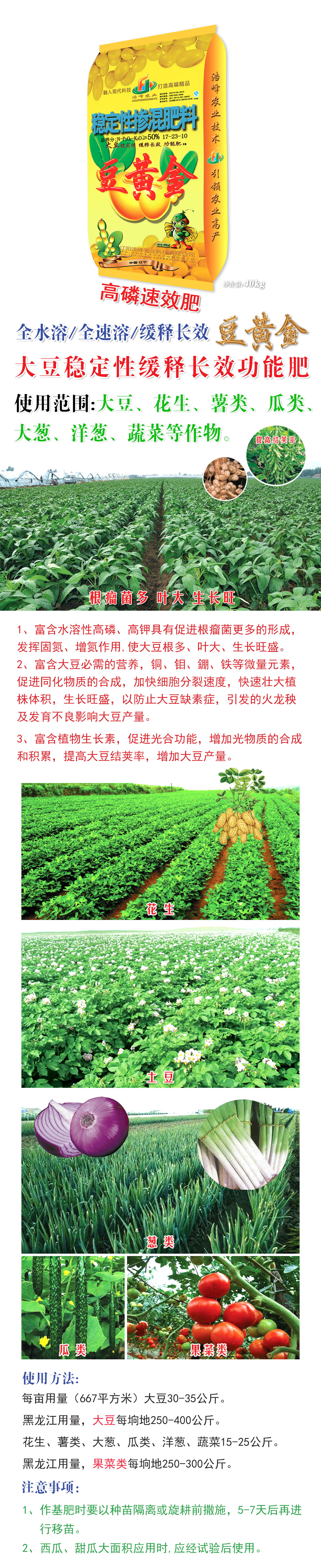 1、富含水溶性高磷、高鉀具有促進根瘤菌更多的形成,發(fā)揮固氮、增氮作用,使大豆根多、葉大、生長旺盛。